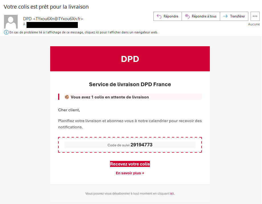 Un mail contenant le logo de La Poste, DHL, Colissimo ou Chronopost, vous indique que « votre colis n’a pas pu être livré », avec le plus souvent des frais de livraison à régler.