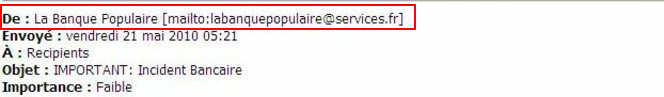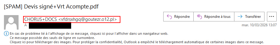 Regarder l’adresse mail complète, pas seulement le nom affiché, notamment ce qui est inscrit après le « @ »,